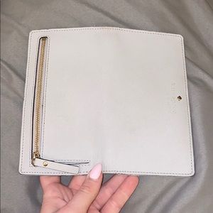 Gray Kate spade wallet. There’s a little stain above the driver license slot but overall in good condition.