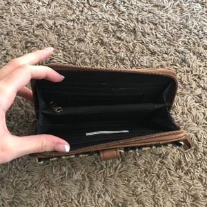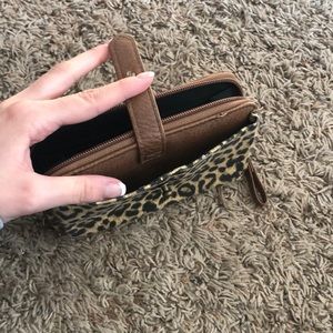 Leather leopard print wallet, front pocket Colin pouch on the inside, zippers work great and was never used.