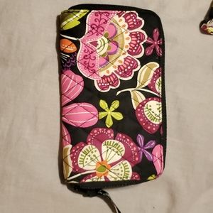 Vera Bradley wallet with 12 credit card slots and a zipperd middle.