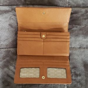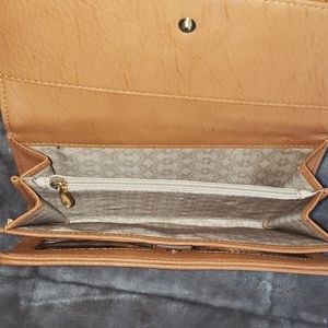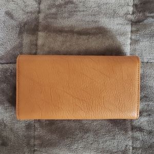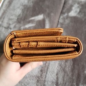 Cognac colored wallet in great condition. Never used. Featuring a belt design with gold metal. Roomy and modern.