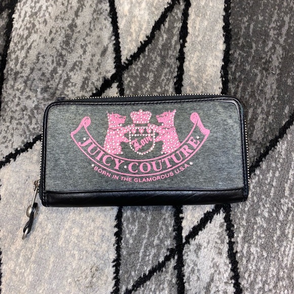 Juicy Couture wallet, gray with pink lettering, barely used.