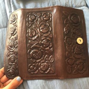 Beautiful rose detailed wallet. So many compartments and little mirror inside