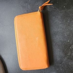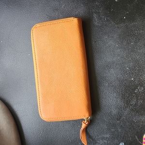 brown faux leather wallet. wrist strap and gold zipper pocket Clean, smoke free, bundle and save