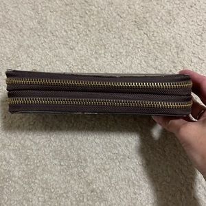 Pre loved Wallet. Can be used as a Wristlet but missing the detachable wristband. There is wear and tear on edges and inside the wallet. See pictures for wear and tear.