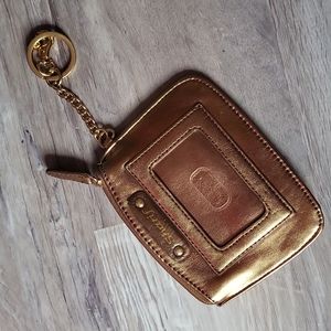 never used gold panda detail key chain wallet. fusia lepord interior!