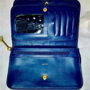 Brand new, never used Dark navy blue Buxton wallet. This is the ultimate wallet with so many sections and can organize anyone.