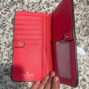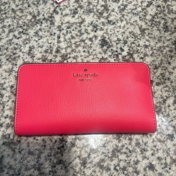 This REAL Kate spade wallet is perfect for summer! ☀️🌻 It’s the perfect size for most purses and is BRAND NEW. Only used once and in perfect condition. It’s more pink than red and super good material. Perfect for gifts and more! 💐💚