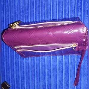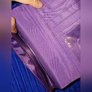 purple wallet with 6 card holders 2 zipper pockets 2 compartments inside