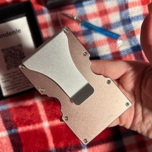 aluminum wallet for men or women , comes in pink the cover shot is an example of how to put your cards or money inside