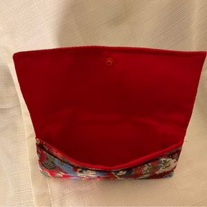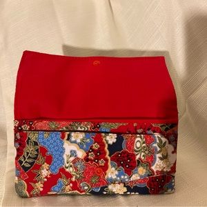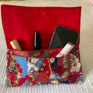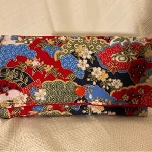 This is an oriental pattern wallet. This wallet’s colors are stunning with the gold accent. It has double pocket and is fully lined.