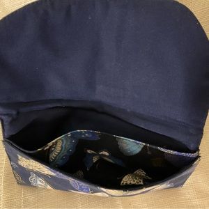 This is a beautiful hand made wallet with gold accent and double pocket. The wallet is fully lined and can be worn day or night.