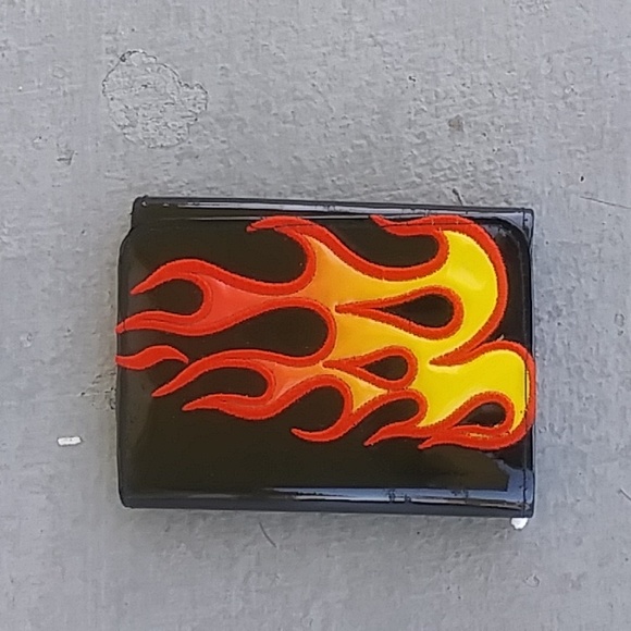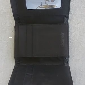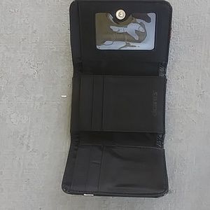 Black Wallet about 5×4 inches new no tag flame edge embroidery snap closed back zipper close small compartment inside cards and id and money compartments