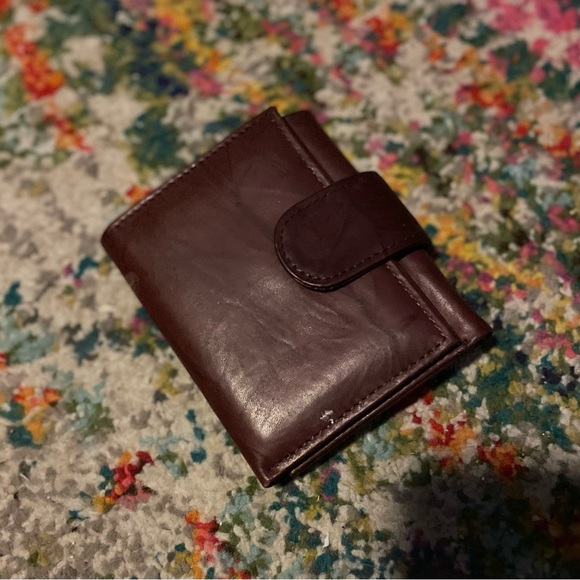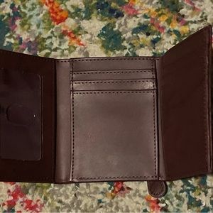 MAKE ME AN OFFER! Brown wallet. Unsure if real or faux leather. Scuff marks on back as shown. Pet and smoke free home!
