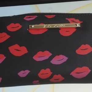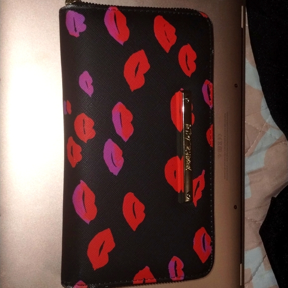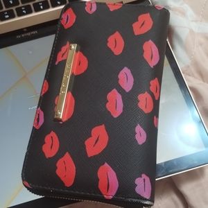 BETSEY JOHNSON BLACK RED KISS UNBOXED ZIP AROUND WALLET WRISTLET