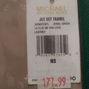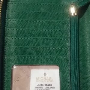 Michael Kors zippered wallet 7 credit cards slot. Extra room for dollar bills or extra cards. Beautiful Kelly green color with goldtone hardware.