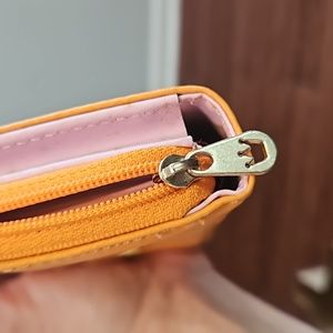 This wallet is orange and pink. Like new with minor blemishes. Wristlet.