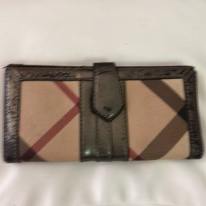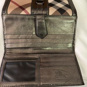 Authentic Burberry wallet. Color of trim and inside of wallet is a metallic pewter/gold.