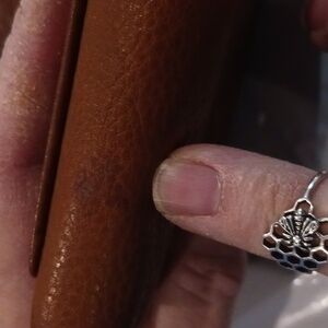 Brown Fossil wallets. 2 inner compartments with 6 credit car slots and one ID slot. 3 side slots with pen loop. Check book compartment with addition 4 credit car slots. outer compartment .Zippered outside slot. Gentle use condition See picture flawed areas.