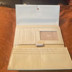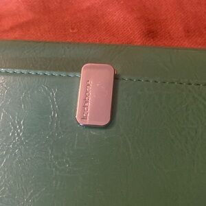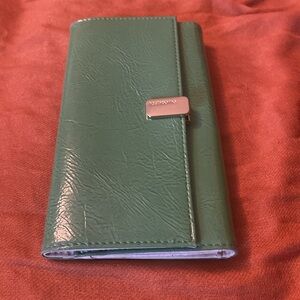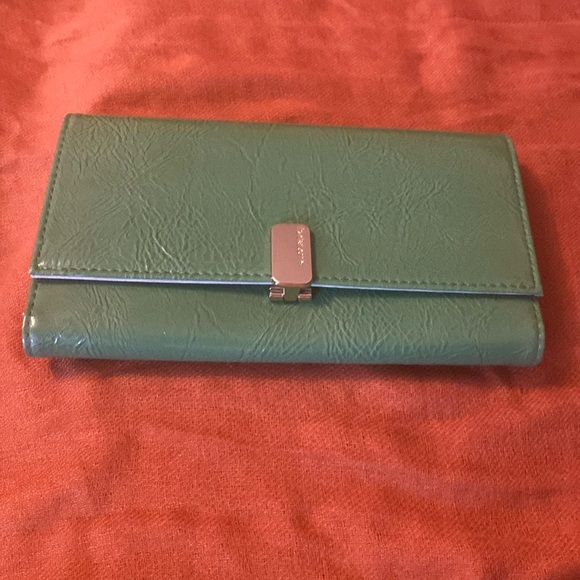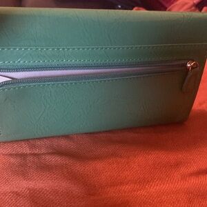 Wallet . Green 4 inches wide and 7 1/2 inches long.