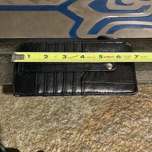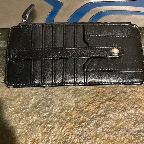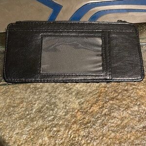 Wallet with zipper pocket for coins or cash, credit card holder, see through drivers license pocket.