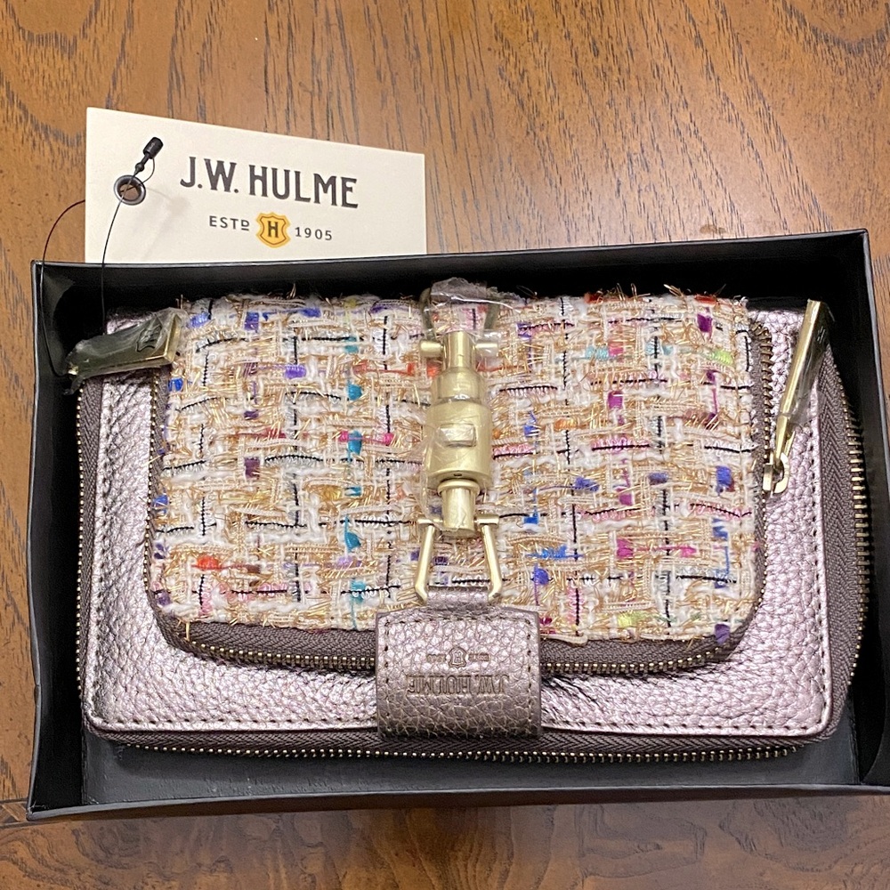 J.W. Hulme Clutch, Pewter, Leather, Ivory Tweed, Zip and Magnetic Closure, Interior Card Holders, Two Slip Pockets and Interior Zip Compartment, NEW!