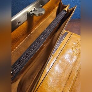 Interior: 1 zip pocket, 4 bill slots, 10 credit card slots; faux suede lining, 100% polyester