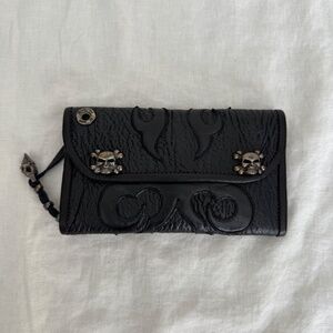 Up for sale is a stunning, authentic custom long wallet from the master silversmith and leather crafter Bill Wall. This isn’t just a wallet; it’s a piece of wearable art. Known for their extreme durability and "built-for-life" quality, BWL pieces are highly sought after by collectors of high-end biker jewelry and leather goods.