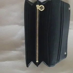 Black snap front wallet. Interior-16 pockets for Credit cards, zipper pocket ,3 large pockets for cash and checks.