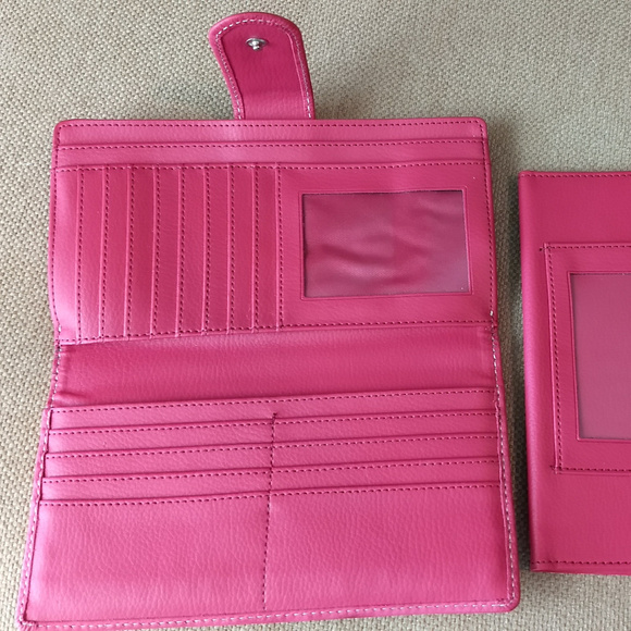 Wallet and checkbook. New, never used. Measurements: 7.5 x 4 x 1.25 in. Genuine leather.