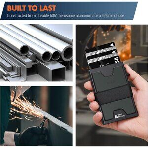 Our slim wallet for men can hold up to 12+ cards in total - Aluminium card case holds max 5 embossed or 6 smooth cards, plus Backplate compartment on the outside holds 6+ cards. The elastic band allows you to hold a few bills or receipts.