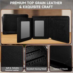 🧿Genuine Leather Luxury: Our wallet for men is crafted from the top grain leather (cowhide leather) which is known for its durability, luxurious texture, and natural grain patterns. After using the wallet for a while, it will be softer, more flexible and suitble for your pocket