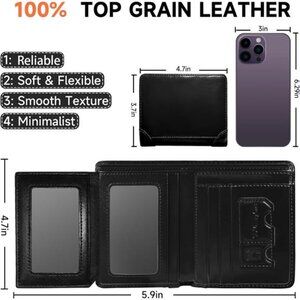 🧿Compact Design: Our men's wallet features a versatile bi-fold design. The size of wallet is 4.7 × 3.7 × 0.79 inch (11.5 × 9.5 × 1.5 cm), the weight is 0.24 lb. The wallet is large capacity but not bulky easily fitting into any pocket, making it a perfect accessory for the modern gentleman