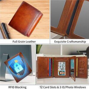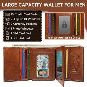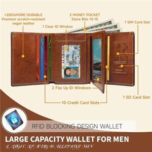 Wallet for Men Trifold RFID Blocking Credit Card Holder, Leather Compact Large