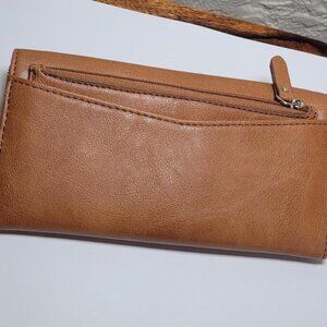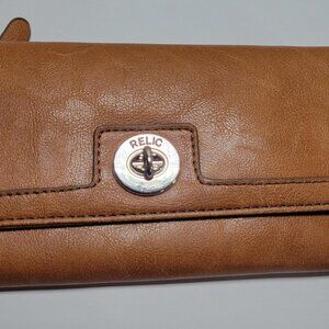 Relic tan wallet, excellent like new condition. Measures 7.5" long by 4" when folded.