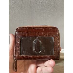 WalletBe Italian Leather Crocodile Embossed C.C. RFID Wallet Brown NIB. Shipped with USPS Ground Advantage.