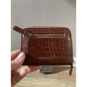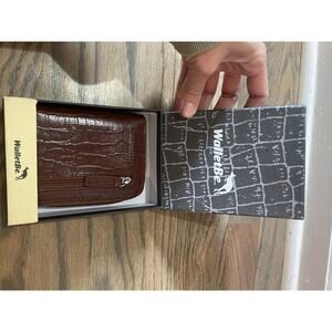 WalletBe Italian Leather Crocodile Embossed C.C. RFID Wallet Brown NIB