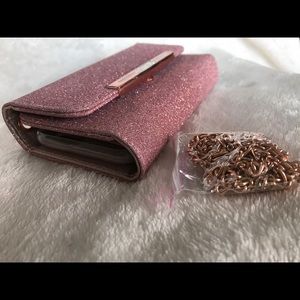 Contains several card slots and money pocket. Detachable decorated magnetic phone case. Optional wallet carrying chain.