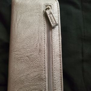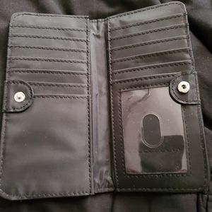 Silver and Black wallet with cc holder and change zipper good to run in and run out on errands Like new