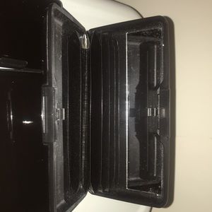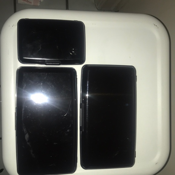 Wallets (not RFID )good to store your business cards in, or other items, the large ones have mirrors in them , one of the large ones has some small scratches on it , but other wise in good condition only used once. Large wallets are 7 1/2 inches wide & inches tall. Small one is 5 inches wide 4 inches tall.