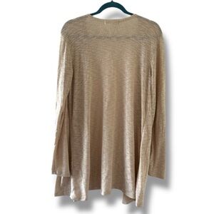 Oatmeal/tan/beige-hued open front long cardigan. Lightweight space dye knit, great layering piece. Preowned in very good condition, no holes or stains.