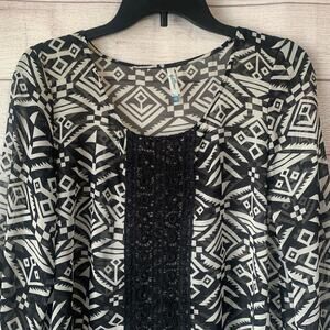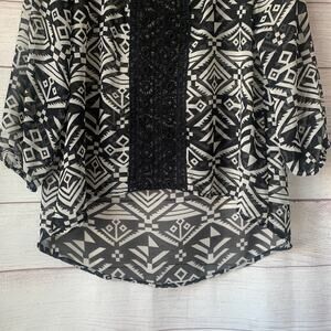 Wallflower Black and White Geometric Print Blouse Crochet Cutout Front Size M