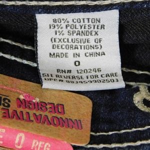 WALLFLOWER low rise zip/button closure 5 pocket distressed stretch denim sewn rolled