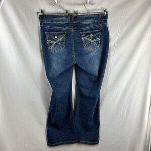 Wallflower Boot Cut Flare Denim Jeans Women Plus 22 Dark Blue Wash Bling Pockets