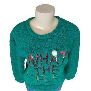 Wallflower Christmas Holiday Sweater Juniors Size Medium Green Sherpa Winter