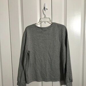 Wallflower gray Christmas, holiday, sweatshirt with pictures of three gnomes wearing santa hats and the saying, "Hangin With My Gnomes" written in black letters. Super soft, comfy, cozy for the holidays. Fun! Great gift. Size extra large (XL) with approximate measurements: 21 inches pit to pit and 25 inches shoulder to hem. A little bit of pilling but otherwise good preowned condition.