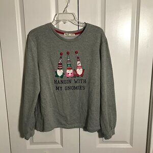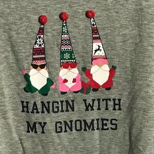 Wallflower Christmas gray sweatshirt, "Hangin With My Gnomes," words/graphic, XL