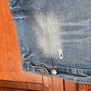 Wallflower Girls Hooded Sleeveless Distressed Denim Jacket M Preowned