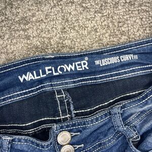 Indigo jeans by Wallflower. Curvy fit for comfort. Ideal for everyday style. Gently worn.