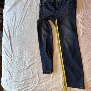 Wallflower high rise skinny jeans in medium wash blue. Pockets and belt loops. No stains or holes. Factory Distressing. Casual stretch denim. Only worn a few times.
