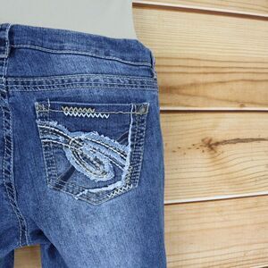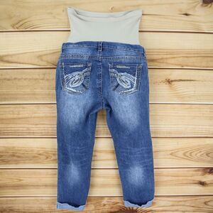 Wallflower Maternity Capri Jeans w/ Belly Band Womens M Blue Faded Denim Cuffed